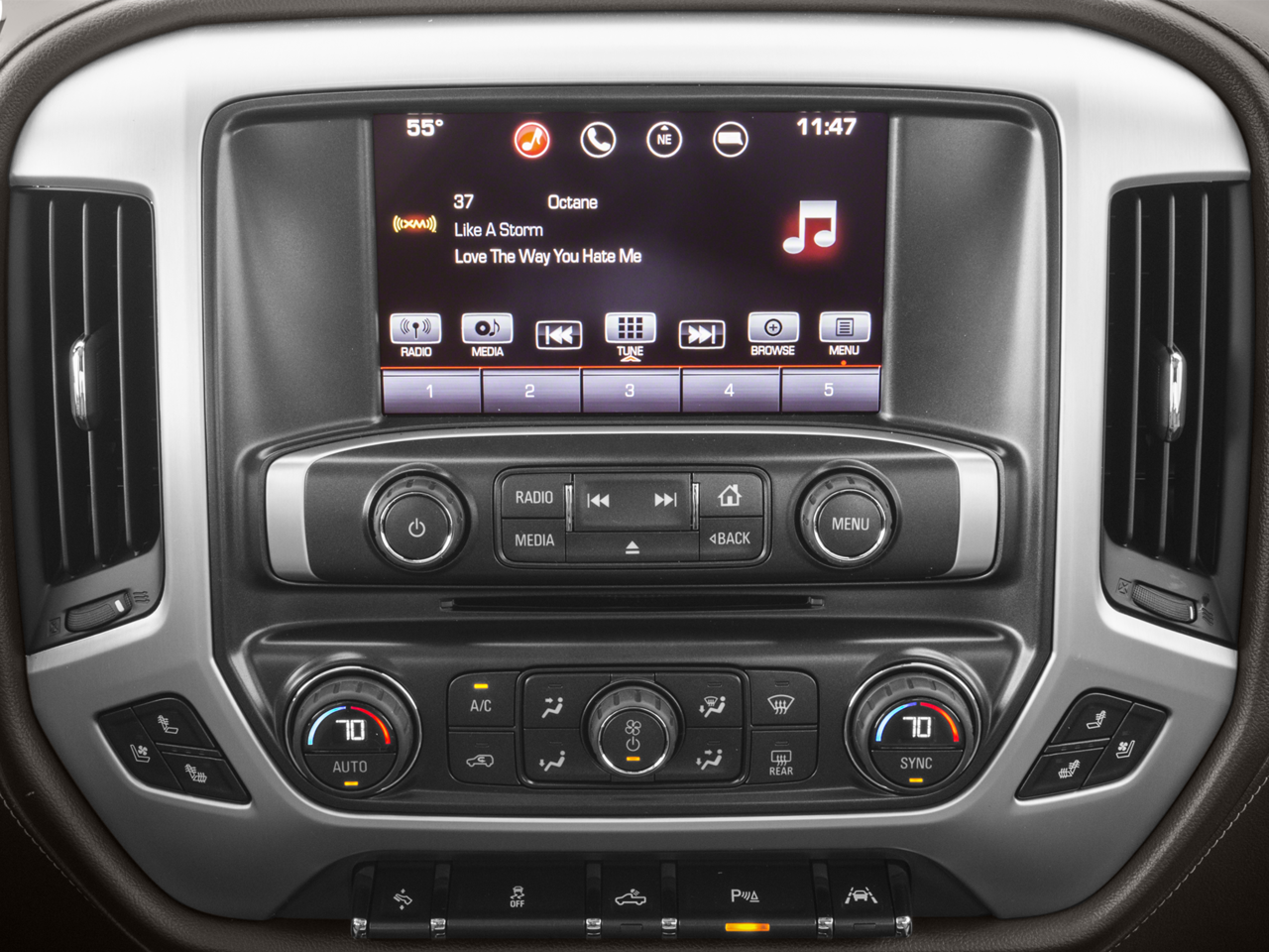 SLT Premium Package: 20" X 9" Polished Aluminum Wheels; Bose Speaker System; 6" Rectangular Chromed Tubular Assist Steps. Preferred Equipment Group 4SA: LED Cargo Box Lighting; EZ Lift and Lower Tailgate; Chrome Door Handles; Rear 60/40 Folding Bench Seat (folds Up); Remote Vehicle Starter System; Electric Rear Window Defogger; Theft Deterrent System (unauthorized Entry); Auxiliary External Transmission Oil Cooler; 4.2" Diagonal Color Display Driver Info Center; Trailering Equipment; 110-Volt AC Power Outlet; Thin Profile LED Fog Lamps; 150 Amp Alternator; Steering Wheel Audio Controls; Universal Home Remote; Color-Keyed Carpeting; Power Windows with Driver Express Up and Down; OnStar and GMC Connected Services Capable; Remote Keyless Entry; P265/70R17 AS BW Spare Tire; Single Slot CD/MP3 Player; 2-Speed Active Electronic Autotrac Transfer Case; 1st and 2nd Row Color-Keyed Carpeted Floor Mats; Deep-Tinted Glass; Dual-Zone Automatic Climate Control; Power Folding and Adjustable Heated Outside Mirrors; Chrome Mirror Caps; Leather Wrapped Steering Wheel with Cruise Controls; Manual Tilt/telescoping Steering Column; Driver and Front Passenger Illuminated Vanity Mirrors; Front Frame-Mounted Black Recovery Hooks; GMC 4G LTE; LED Tailamps with Signature; Auto-Dimming Inside Rearview Mirror; Power Adjustable Pedals; Rear Wheelhouse Liners; Heavy-Duty Rear Locking Differential; Chrome Bodyside Moldings. 20" X 9" Polished Aluminum Wheels. 6" Rectangular Chromed Tubular Assist Steps. Heated and Ventilated Front Bucket Seats. Front Full Feature Power Reclining Bucket Seats. Bose Speaker System. AM/FM/GMC Infotainment and Navigation Radio. Spray-On Pickup Box Bed Liner with GMC Logo. Off-Road Suspension Package. Integrated Trailer Brake Controller. P275/55R20 AT BW Tires. **Equipment listed is based on original vehicle build and subject to change. Please confirm the accuracy of the included equipment by calling the dealer prior to purchase.**